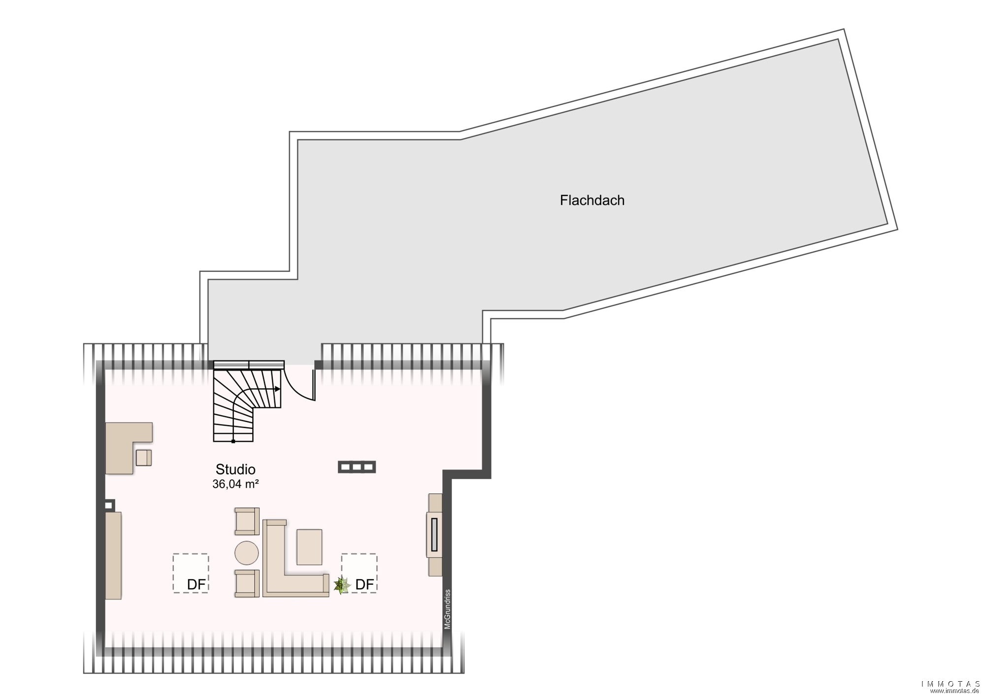 Allerdings besteht im Bereich des Flachdachs des Anbaus ein Feuchtigkeitseintritt, der entsprechenden Sanierungsbedarf mit sich bringt: