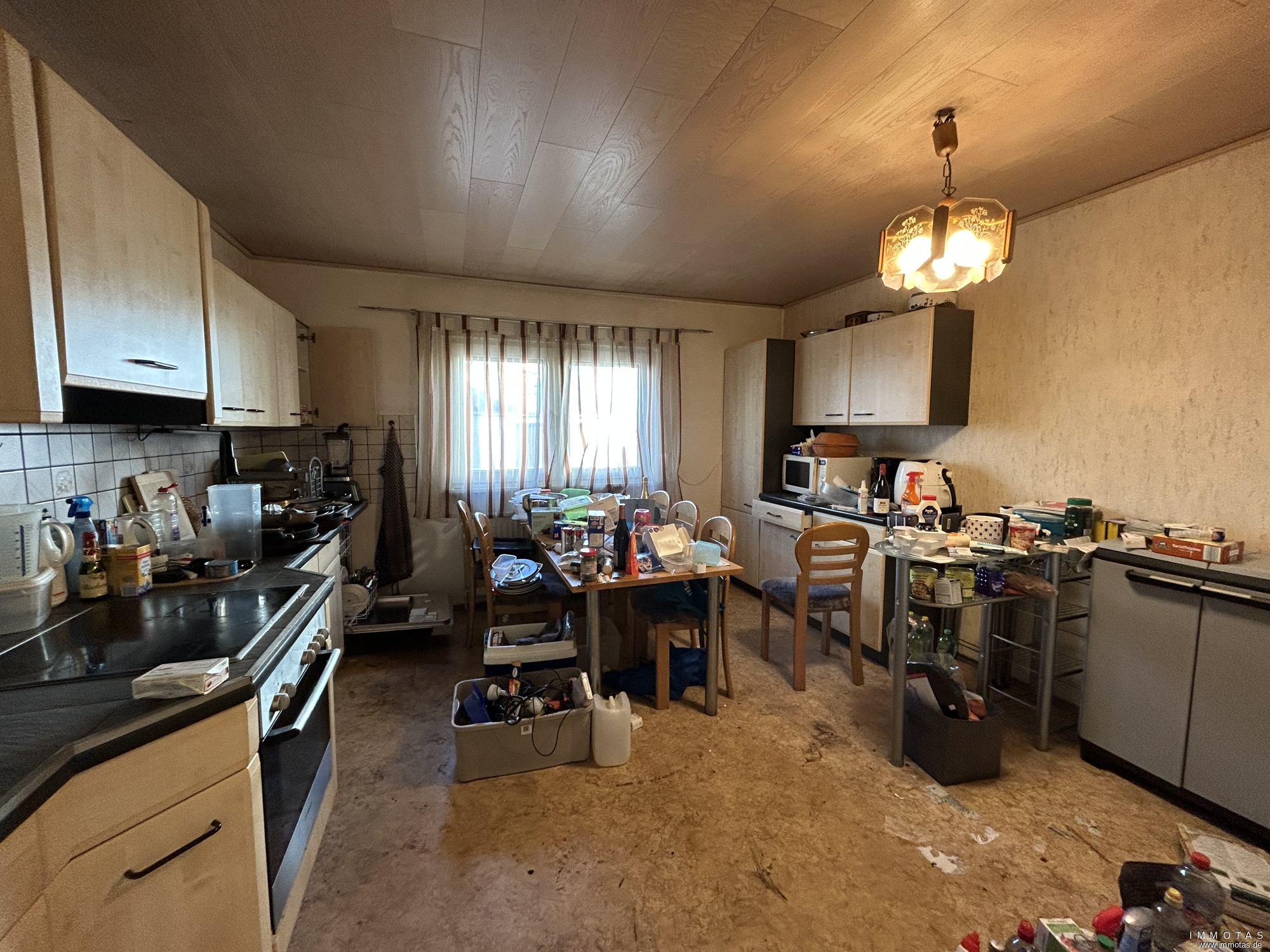 Die technische und bauliche Ausstattung ist überwiegend älteren Datums und macht eine komplette Renovierung bzw. Modernisierung des gesamten Hauses erforderlich. Die Gas-Zentralheizung inklusive Warmwasseraufbereitung stammt aus den Jahren 2007/2008 (Fabrikat Sieger). Die Fenster sind überwiegend Kunststofffenster mit Zweifachverglasung aus dem Jahr 1985, teilweise aus 1996. Die vorhandenen Bodenbeläge bestehen aus Fliesen, Laminat und PVC und sind ebenfalls erneuerungsbedürftig. An der Wetterseite des Hauses befindet sich eine asbesthaltige Schieferverkleidung, die im Rahmen einer Sanierung besondere Beachtung erfordert.