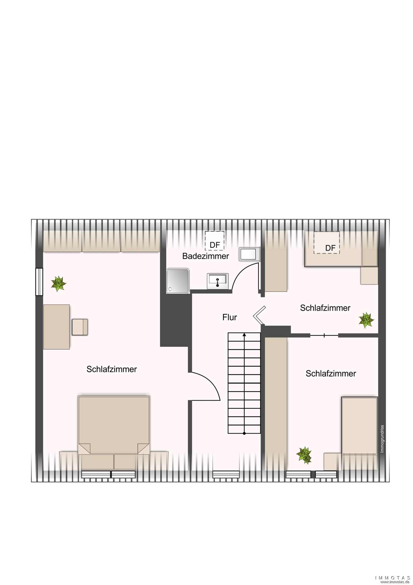 Das ausgebaute Dachgeschoss beherbergt drei weitere Zimmer, die sich flexibel als Kinder- oder Elternschlafzimmer nutzen lassen. Die vorhandenen Dachschrägen in Verbindung mit den großzügigen Dachgauben, verleihen den Räumen eine gemütliche Wohnatmosphäre. Im Dachgeschoss steht außerdem ein teilweise modernisiertes Tageslichtbad mit Dusche zur Verfügung.