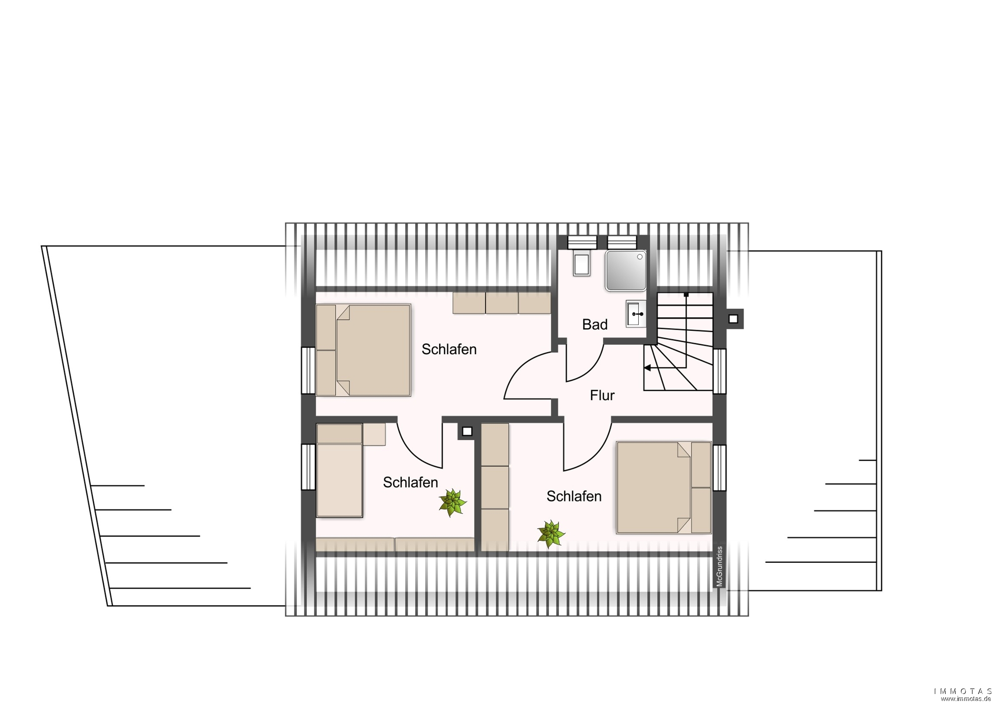 Zur Ausstattung gehören drei Badezimmer – jeweils ein Tageslicht-Duschbad im Erdgeschoss und Dachgeschoss sowie ein innenliegendes Bad im Untergeschoss – sowie ein separates Gäste-WC im Erdgeschoss. Die Bodenbeläge bestehen aus Parkett, Laminat, Fliesen und Teppich. Beheizt wird das Haus über eine Öl-Zentralheizung aus dem Jahr 2009, unterstützt durch eine Solaranlage zur Warmwasseraufbereitung.