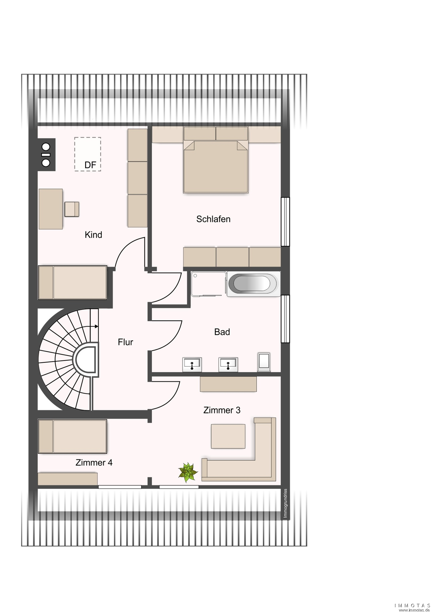 Die Raumaufteilung ist familienfreundlich gestaltet: Insgesamt stehen fünf Zimmer, darunter drei Schlafzimmer, zur Verfügung (aus einem der Zimmer, könnte man auch zwei kleine Zimmer gestalten). Das Tageslicht-Gäste-WC im Erdgeschoss, das helle Badezimmer im Dachgeschoss mit Dusche und Badewanne sowie zwei weitere Duschbäder im Untergeschoss – eines davon zur Einliegerwohnung gehörend – bieten ausreichend Komfort für den Alltag. Die vorhandene Einbauküche ist zwar nicht mehr ganz zeitgemäß, jedoch funktional ausgestattet und sofort nutzbar. Zusätzlich steht im Erdgeschoss ein praktischer Hauswirtschaftsraum zur Verfügung, der für zusätzlichen Stauraum und organisatorische Abläufe im Haushalt sorgt. Ein Abstellraum ergänzt den separaten Bereich der Einliegerwohnung.