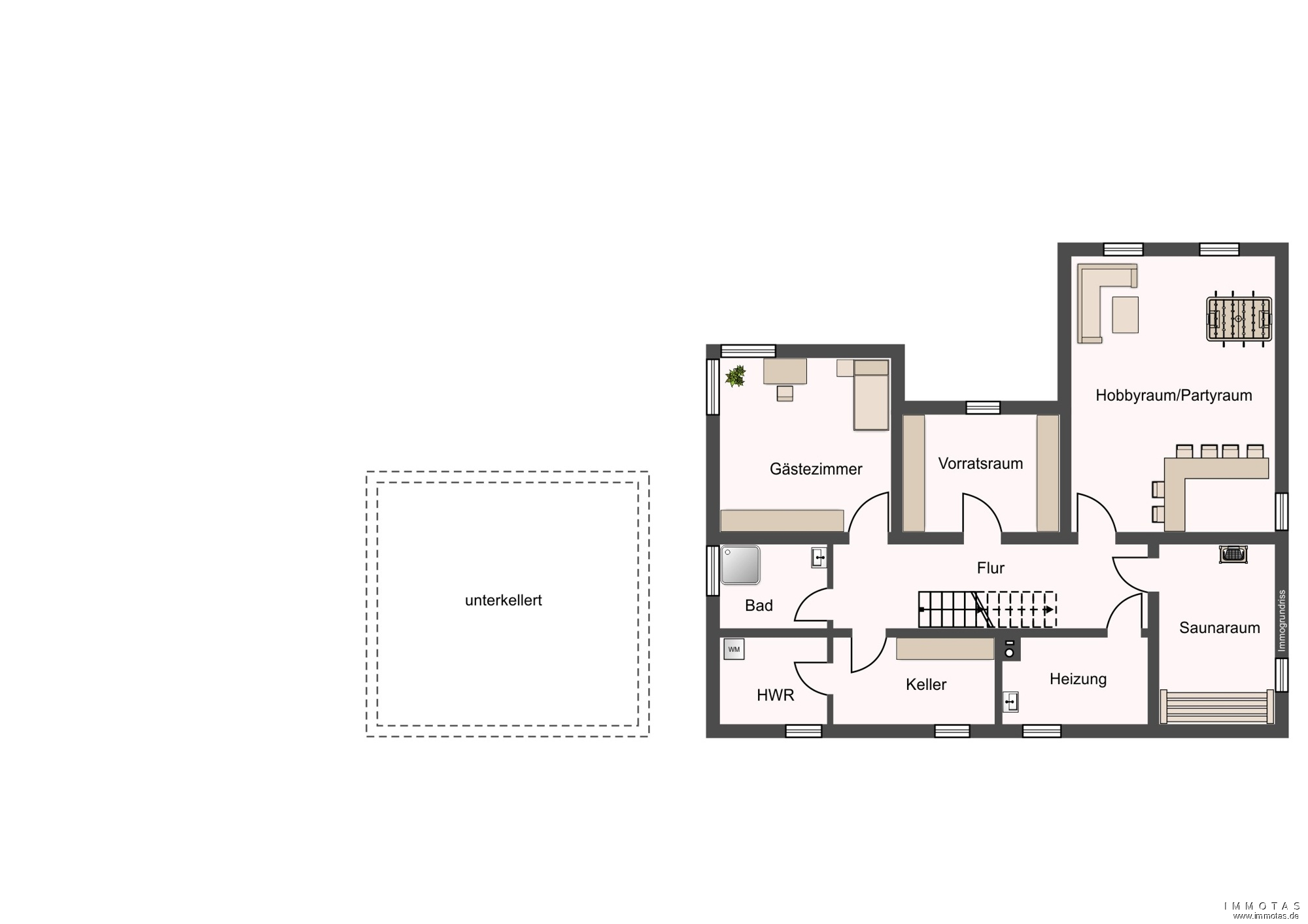 Das Einfamilienhaus wurde 1980 von der Fertighausfirma Wenzel in eingeschossiger Holzständerbauweise errichtet und verfügt über ein vollständig unterkellertes Untergeschoss in Massivbauweise. Neben den überwiegend im Erdgeschoss angeordneten Wohnräumen sind im Untergeschoss weitere, wohnlich ausgebaute Bereiche vorhanden, darunter ein Hobbyraum, eine Sauna, ein Duschbad sowie ein zusätzliches Schlaf-/Gästezimmer, wodurch sich vielseitige Nutzungsmöglichkeiten ergeben. Das Dachgeschoss ist derzeit nicht ausgebaut und bietet eine attraktive Ausbaureserve für zusätzlichen Wohn- oder Arbeitsraum.