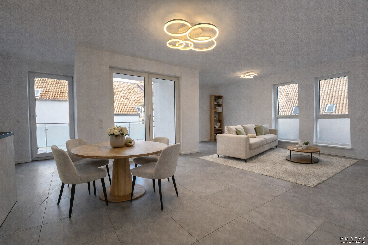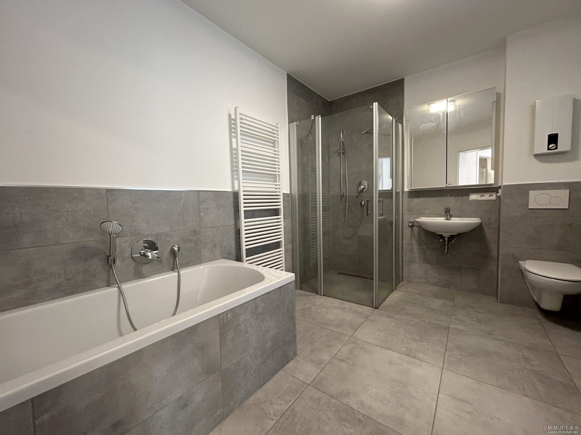 Die Wohnung erstreckt sich über ca. 117 m² Wohnfläche und bietet 3 Zimmer, darunter zwei Schlafzimmer sowie einen großzügigen Wohn- und Essbereich mit offener Küche. Ein modernes Tageslichtbad mit Badewanne sorgt für Komfort, ergänzt durch ein separates Gäste-WC mit integrierter Dusche – eine praktische und hochwertige Zusatzfunktion im Alltag. Ein Abstellraum innerhalb der Wohnung bietet zusätzlichen Stauraum und erhöht die Alltagstauglichkeit erheblich.