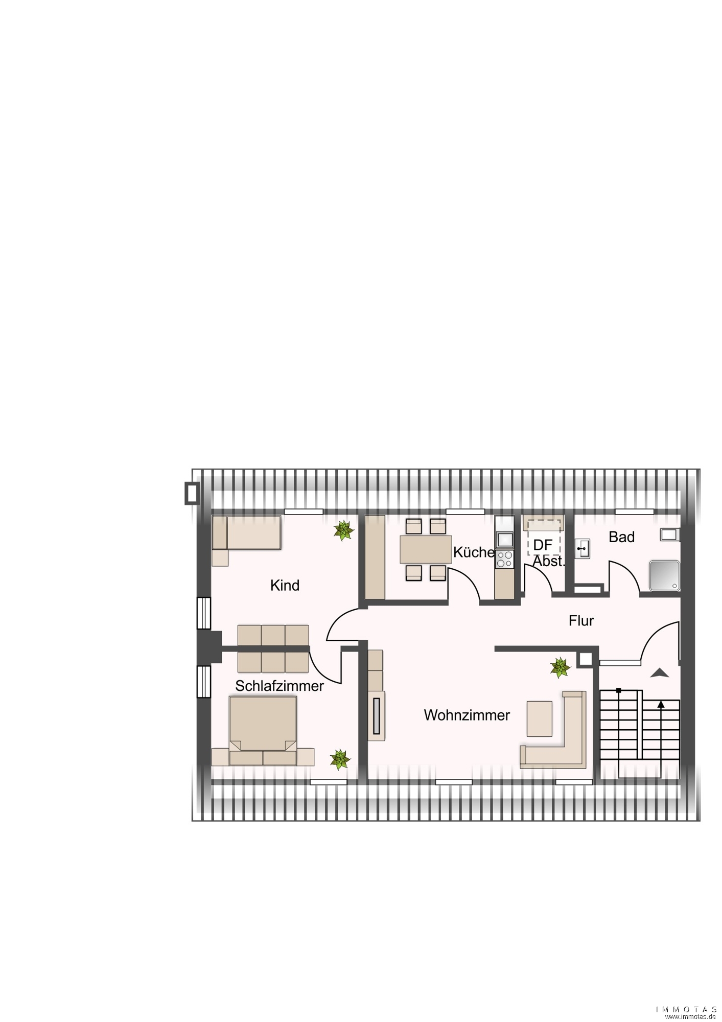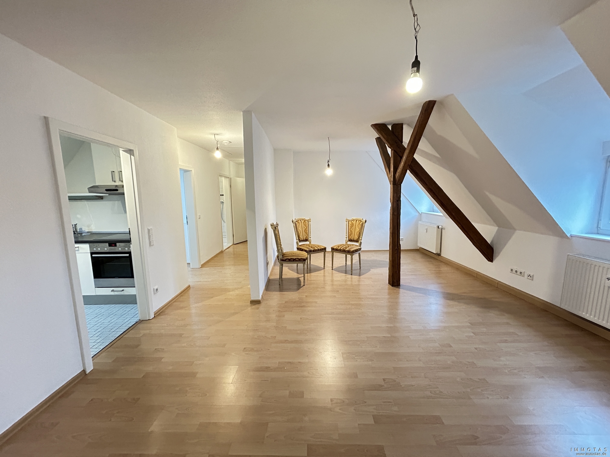 Die Dachgeschosswohnung ist aktuell vermietet und verfügt über ein Wohn- und Esszimmer, welches den Mittelpunkt der Wohnung darstellt, zwei Schlafzimmer, ein Badezimmer, eine Küche und einen Abstellraum. Die kompakte und praktische Aufteilung macht diese Einheit besonders attraktiv für Mieter.