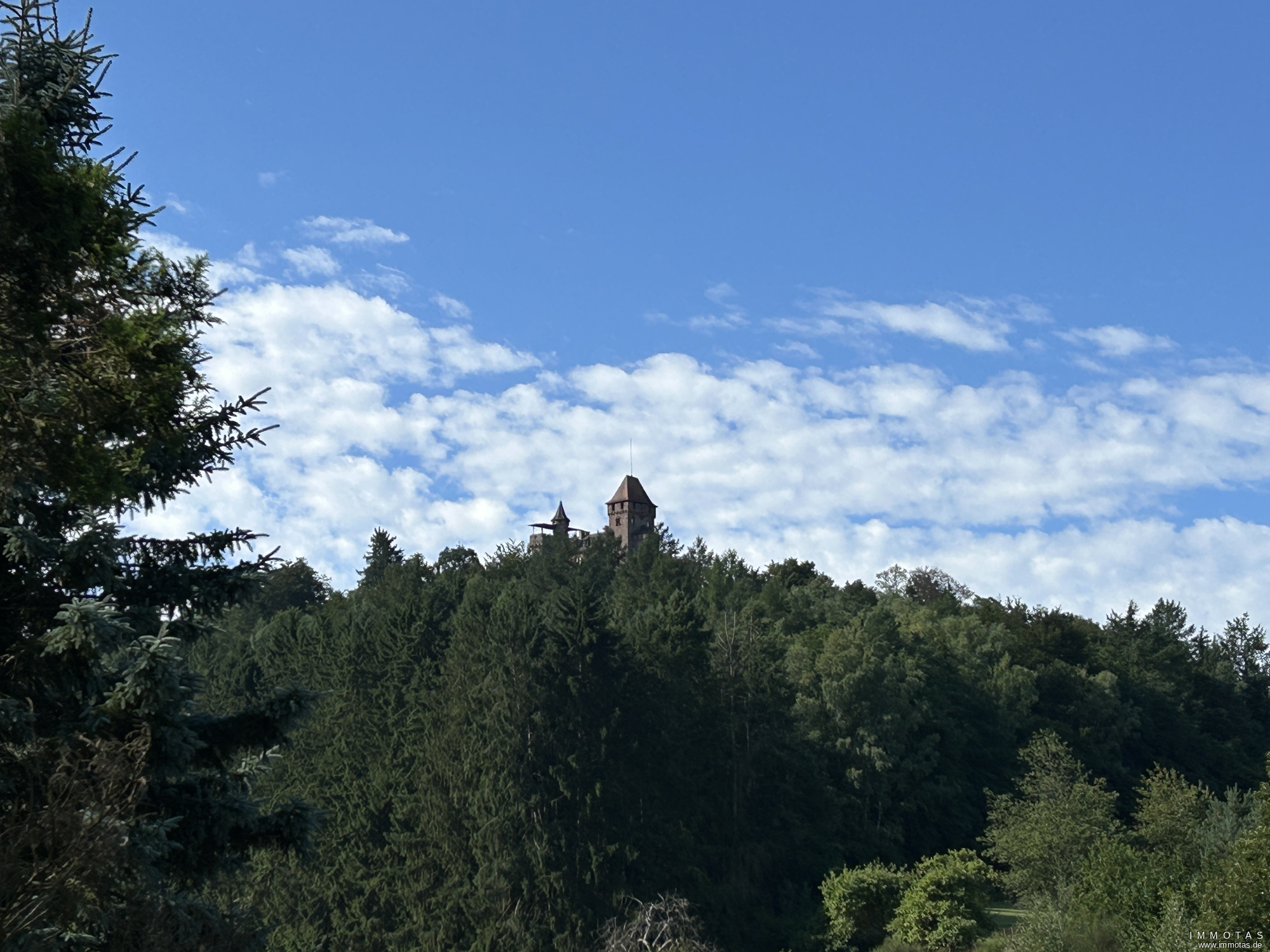 Eine großzügige, unterkellerte Terrasse sowie der schön gelegene Garten bieten ideale Voraussetzungen, um den Blick auf die Burg und die naturnahe Umgebung in vollen Zügen zu genießen. Für Ihre Fahrzeuge stehen eine Garage im Untergeschoss sowie zwei Carport-Stellplätze zur Verfügung.