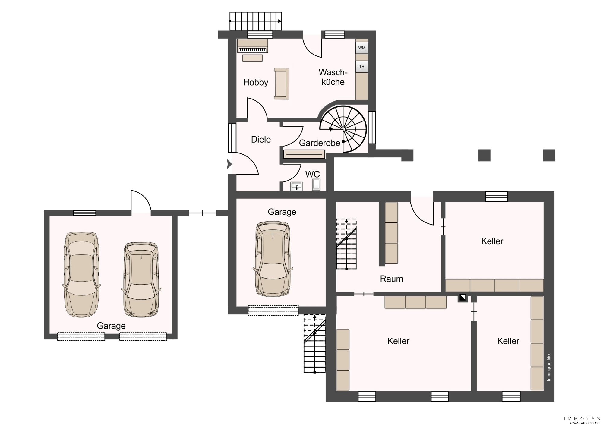 Zu dem Anwesen gehören außerdem eine Doppelgarage, eine Einzelgarage, sowie zusätzlich Parkmöglichkeiten im Freien.
