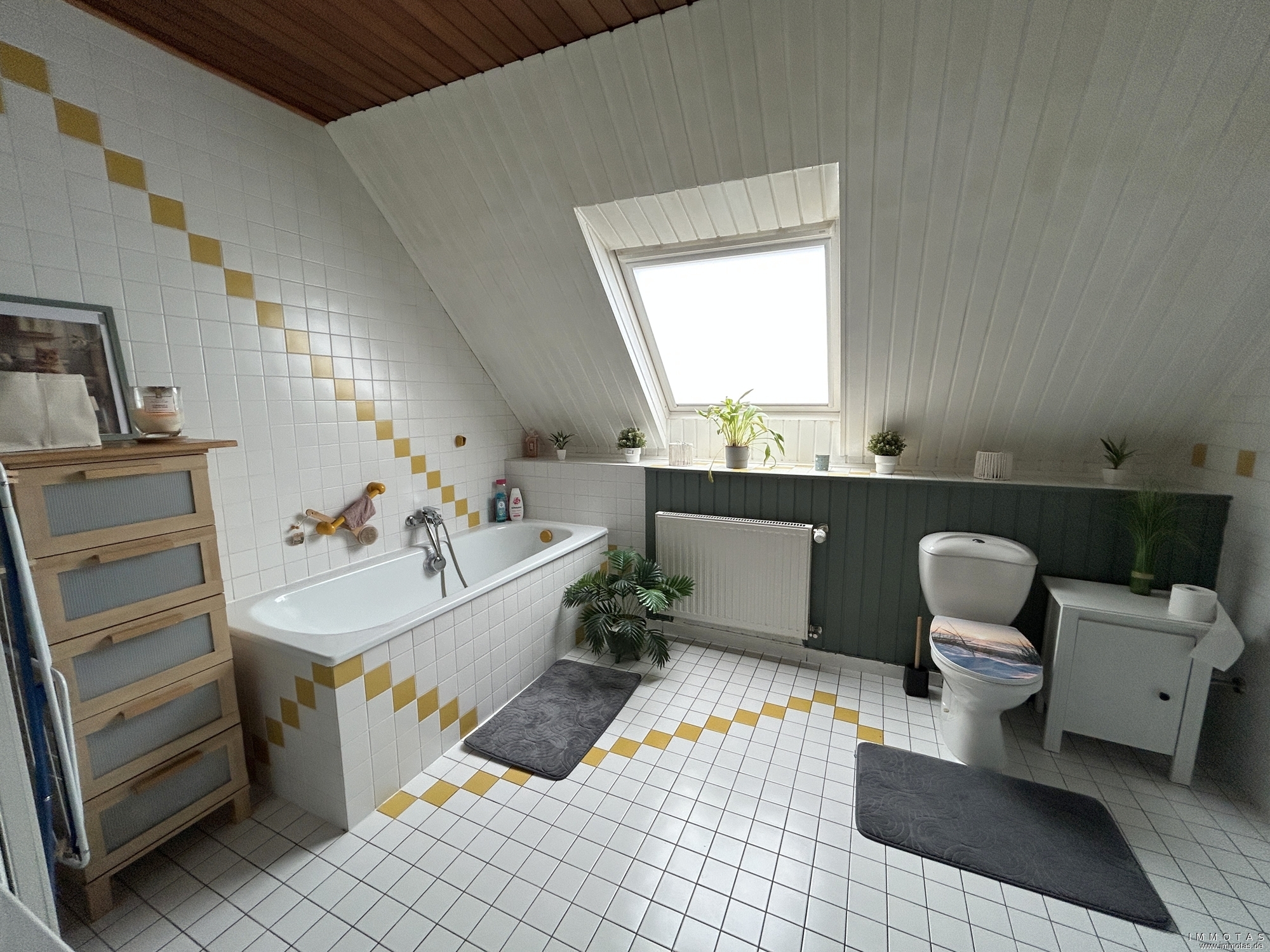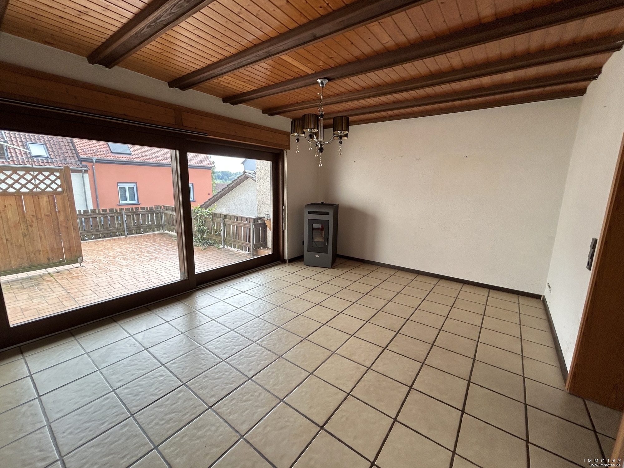 Haus Nr. 4a wurde in den Jahren 1984/85 angebaut, ebenfalls in Massivbauweise mit ausgebautem Dachgeschoss und vollständig unterkellertem Bereich, der teilweise zu Wohnzwecken genutzt wird. Im Erdgeschoss befindet sich ein heller Wohnbereich mit Kaminofen (Pellets und Holz), der für eine angenehme Wohnatmosphäre sorgt. Die Einbauküche ist Bestandteil der Wohnung, das Tageslichtbad ist funktional ausgestattet. Bei den Fenstern handelt es sich teils noch um Holzfenster mit Zweifachverglasung aus dem Baujahr, teils wurden sie 2019 durch moderne Kunststofffenster mit Dreifachverglasung ersetzt. Auch dieses Haus verfügt über einen Balkon und eine Terrasse.